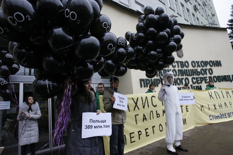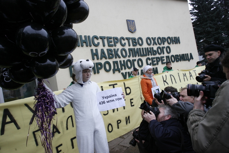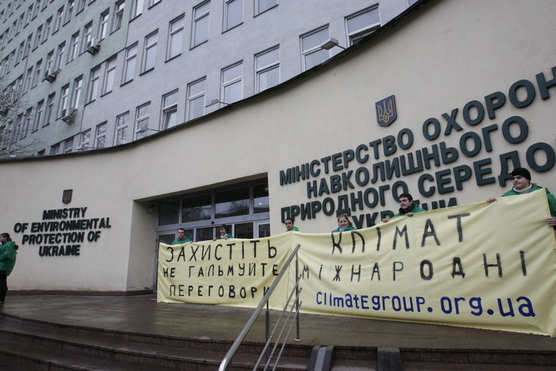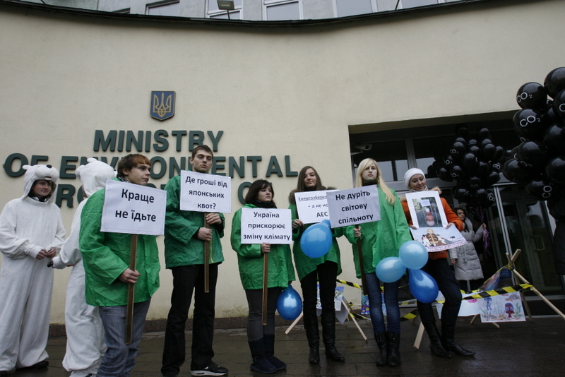 2.12.2009 пройшла акція під стінами Міністерства охорони навколишнього середовища. Акція була спільно організована Робочою групою зі зміни клімату та Кліматичним рухом України. Екологічні громадські організації блокували вхід до Мін природи, у хмарі чорних повітряних кульок показали справжню позицію України, вручили позицію екологічних організацій на пост-Кіотський період для представників Національного агентства екологічних інвестицій.